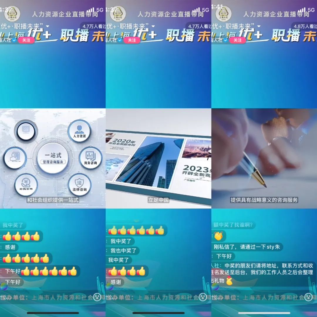 4月24日下午,國企商務(wù)&中企人力作為優(yōu)秀人力資源服務(wù)代表企業(yè)之一,受邀參加由上海市人力資源和社會(huì)保障局主辦的“樂業(yè)優(yōu)+·職播未來”——2025年人力資源企業(yè)直播帶崗系列活動(dòng)。此次直播通過“上海人社”官方抖音號(hào)、微信視頻號(hào)及嗶哩嗶哩平臺(tái)同步播出,線上觀看量突破萬人次,熱度持續(xù)攀升!
