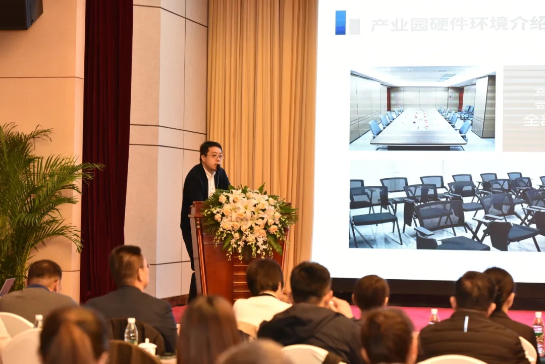 ▲ 中原數(shù)字經(jīng)濟(jì)產(chǎn)業(yè)園總經(jīng)理薛飛主題演講《產(chǎn)教融合-打造人才向垂直產(chǎn)業(yè)延伸的精細(xì)化觸手》并介紹園區(qū)