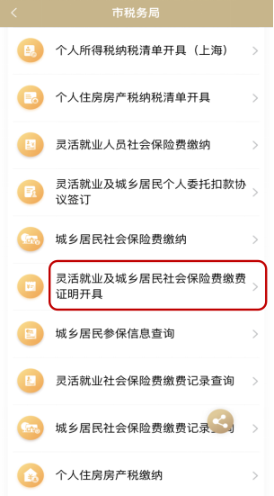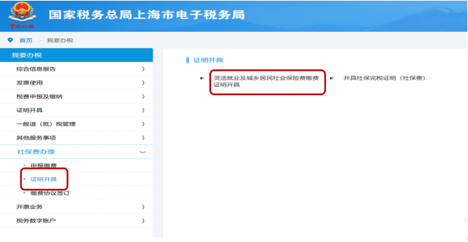 2、進入【靈活就業(yè)及城鄉(xiāng)居民社會保險費繳費證明開具】