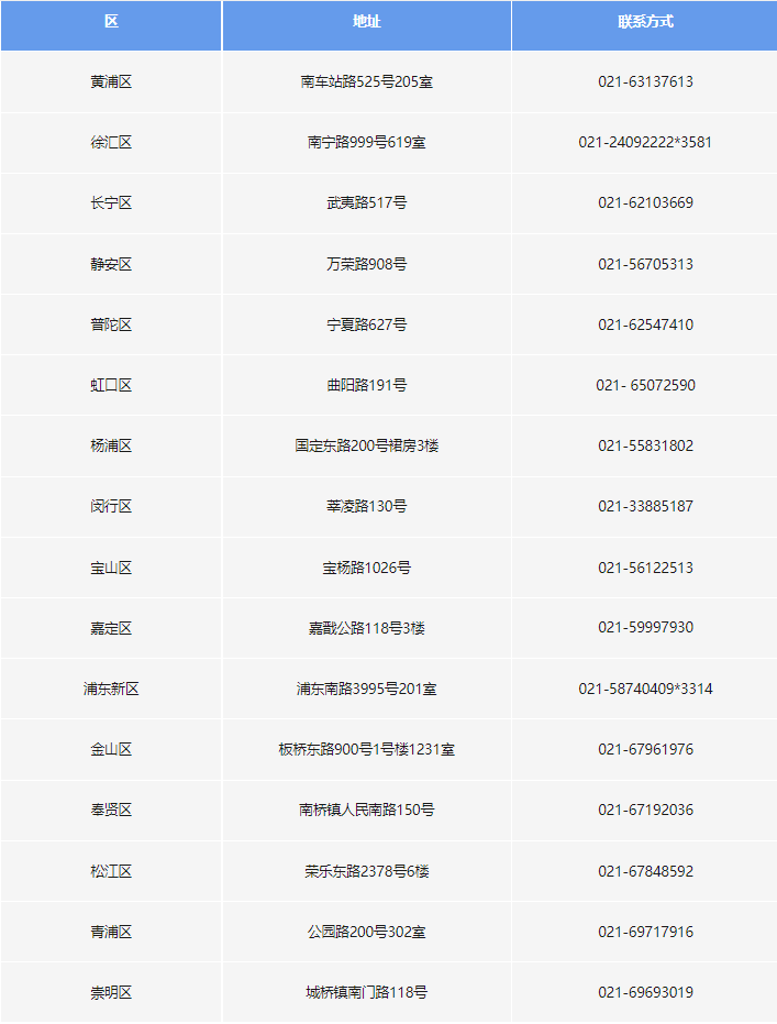 上海市各區(qū)公共創(chuàng)業(yè)指導(dǎo)服務(wù)部門聯(lián)系方式