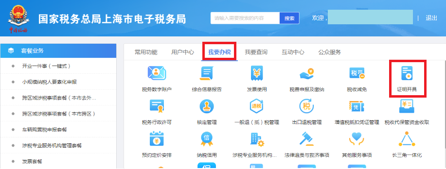選擇【我要辦稅】——【證明開具】——【開具稅收完稅證明】。