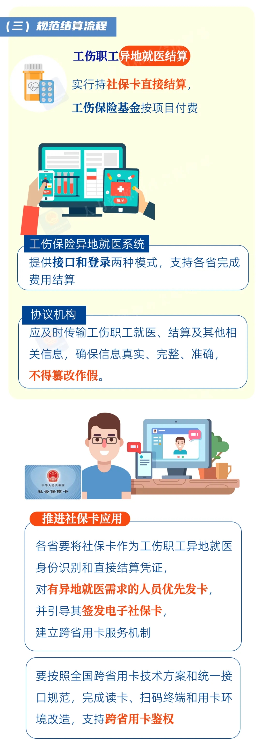 2024年4月1日,由各省(自治區(qū)、直轄市)和新疆生產(chǎn)建設(shè)兵團人力資源社會保障廳(局)選擇部分地市啟動工傷保險跨省異地就醫(yī)直接結(jié)算試點工作,依托全國工傷保險異地就醫(yī)結(jié)算信息系統(tǒng),實行試點地市人員持社會保障卡(含電子社保卡)直接結(jié)算跨省異地就醫(yī)住院工傷醫(yī)療費用、住院工傷康復(fù)費用和輔助器具配置費用。試點期限為一年。通過試點,實現(xiàn)試點地市跨省異地就醫(yī)直接結(jié)算制度基本定型,機制運行較為順暢,異地就醫(yī)備案規(guī)范便捷,當(dāng)?shù)毓毠さ目缡‘惖鼐歪t(yī)直接結(jié)算需求得到初步滿足。